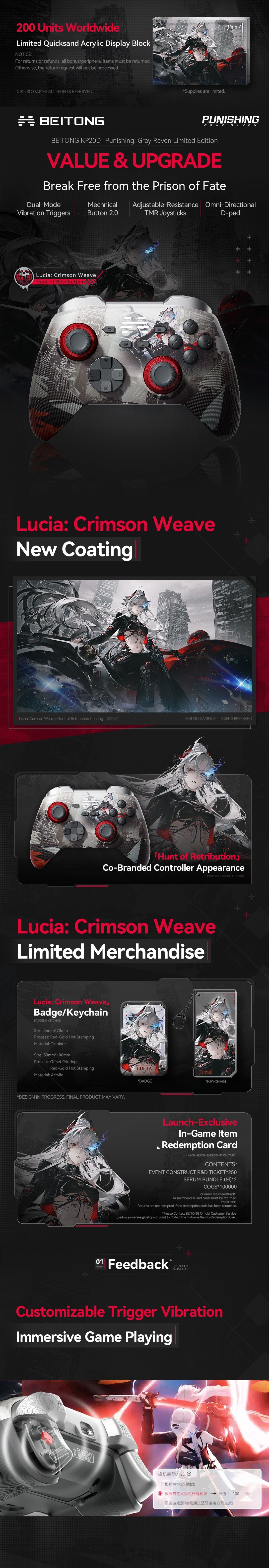 The BEITONG KP20D Elite Controller Punishing Gray Raven Limited Edition is now open for pre-orders. Expected to arrive in Apr. 2026. Once stock arrives, orders will be shipped immediately, with an estimated delivery time of 5-7 business days. Learn More