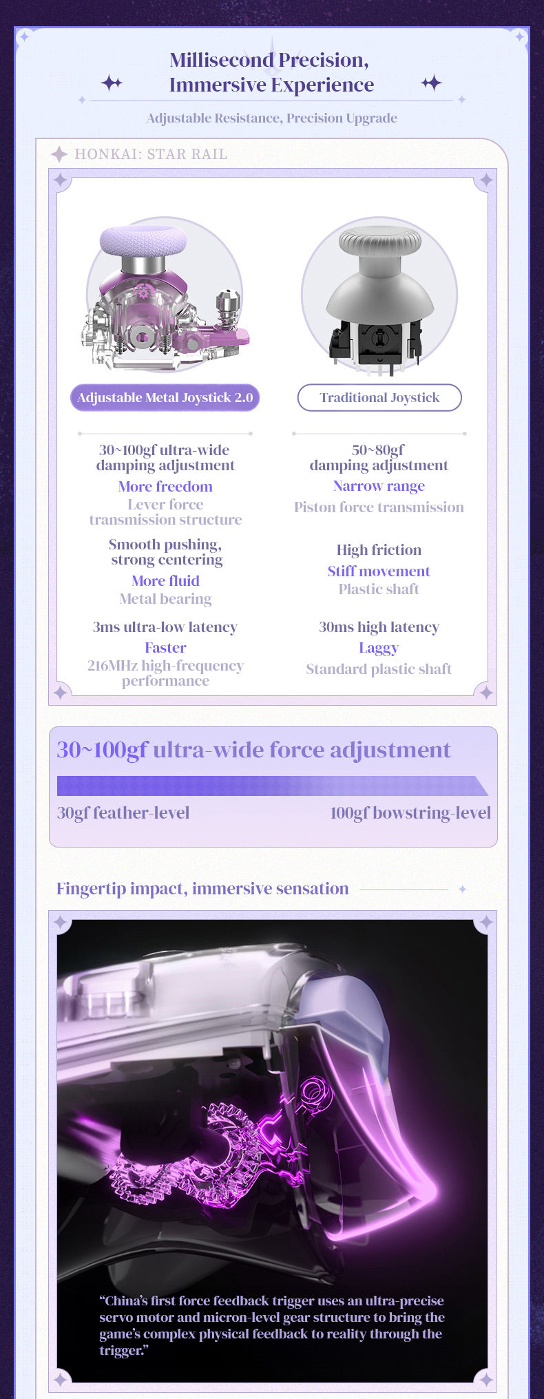 - Force-Adjustable Hall Joystick 2.0 with 30–100gf Tension, 50% Stronger, 20M+ Lifespan