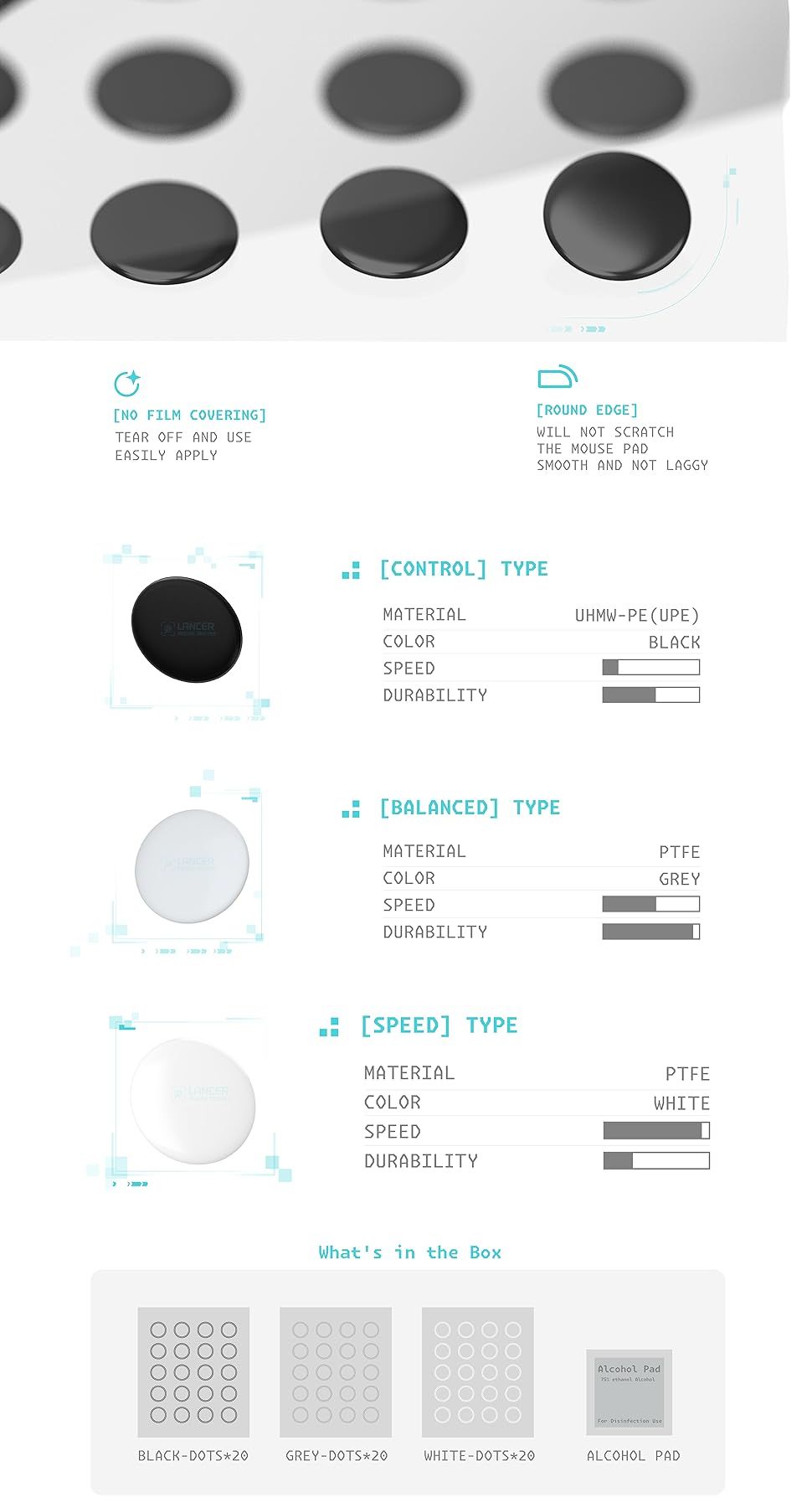 Lancer Mouse Skates – 60 Dot Set for All Mousepads, 3 Sliding Speeds