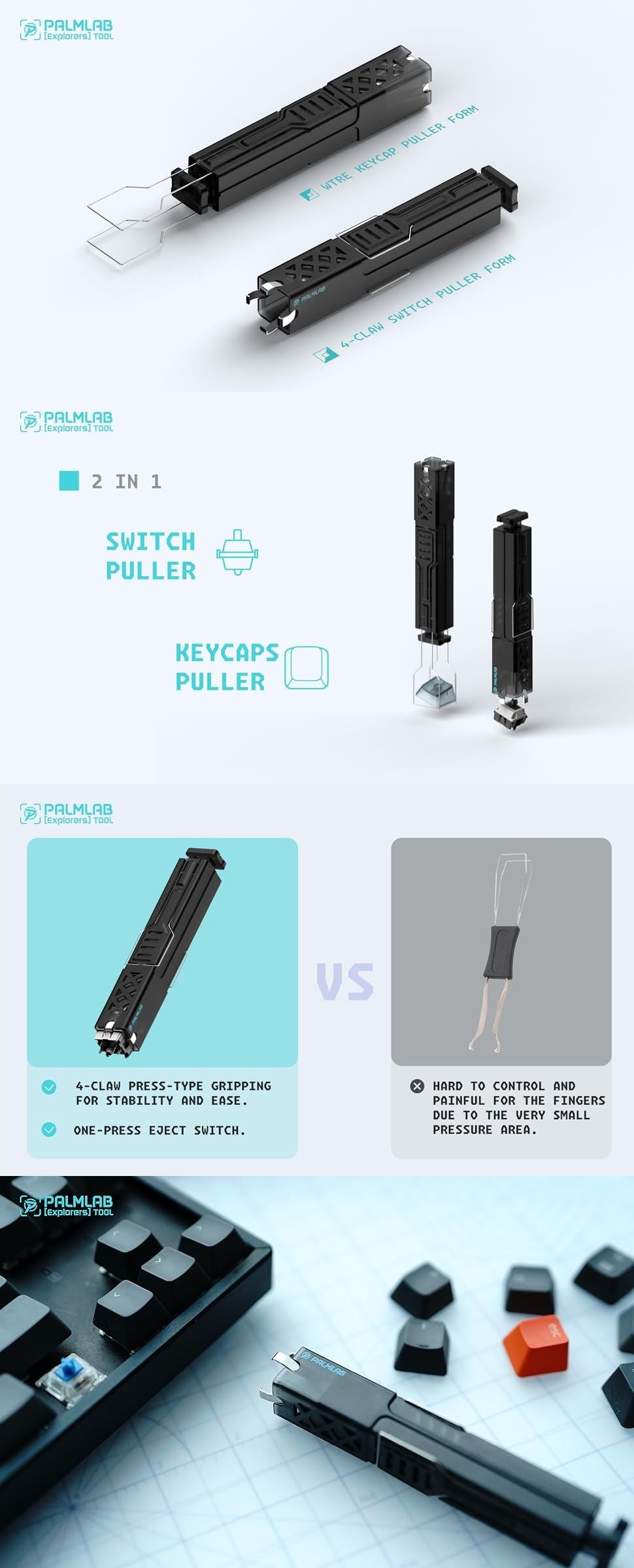 PALMLAB 2-in-1 Switch & Keycap Puller with 4-Claw Grip – One-Press Fast Removal